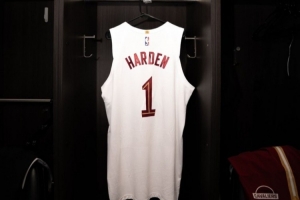 赛前,骑士官方晒出了哈登的1号球衣。
